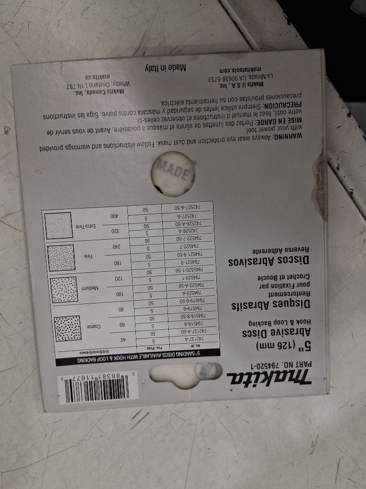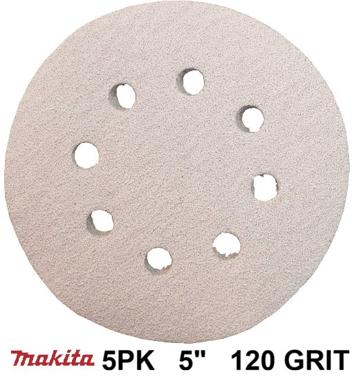 5PK MAKITA HOOK AND LOOP SANDING DISCS - 5" 120 GRIT