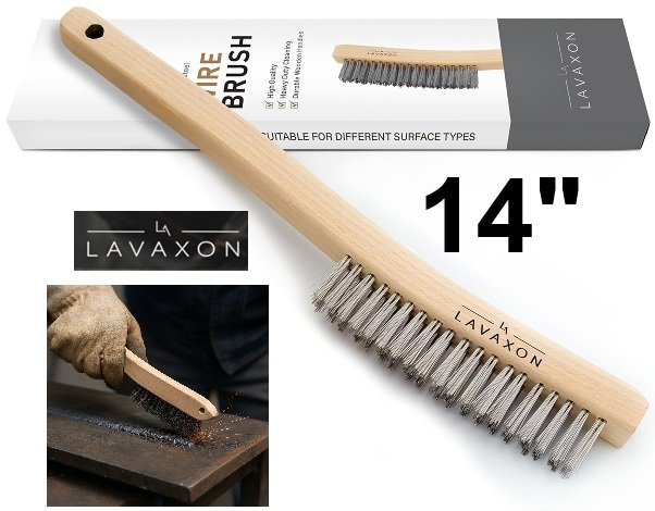 Lavaxon Heavy Duty Wire Brush with Stainless Steel Bristles & Wood Handle Grip for Wielding Slag, Dirt & Paint Scrubbing with Deep Cleaning-14"-light Brown (model:‎WSingle-01)