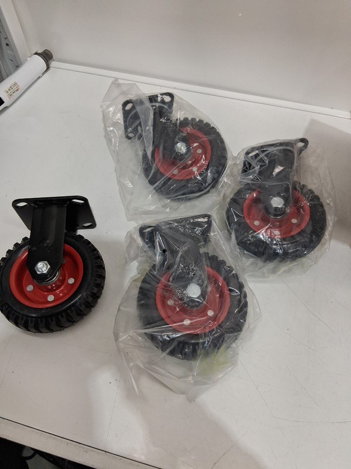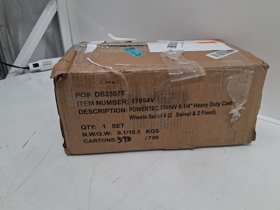 4PK POWERTEC 6" Heavy-Duty Caster Set (2 Swivel & 2 Fixed) with Rubber Knobby Tread, Solid Rubber Wheels with Steel Hub, 330 lb Load Capacity Per Wheel and Plate Mount (Model: 17054V)