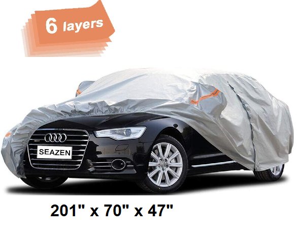 SEAZEN 185’’-200’’ Car Cover 6 Layers, Waterproof Sedan Car Cover with Zipper Door, Snowproof/UV Protection/Windproof (Sedan-3XL)
