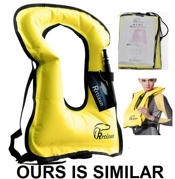 UNISEX Rrtizan Portable Inflatable Life Jacket Snorkel Vest - 220 LBS CAPACITY - YELLOW