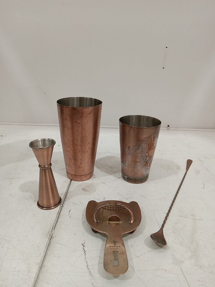 Please note that there are heavy scratch marks and decolorization on the cocktail set due to previous use. (Please see photos)