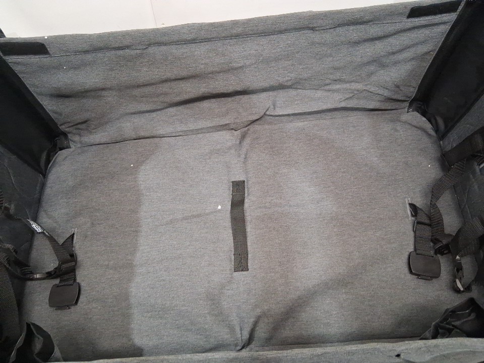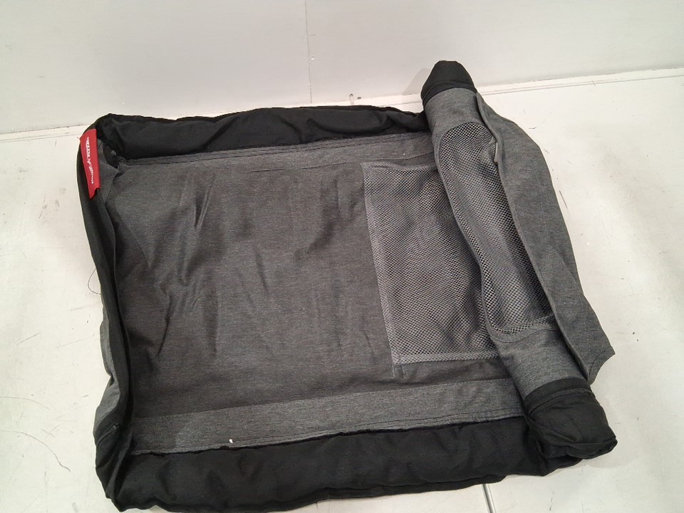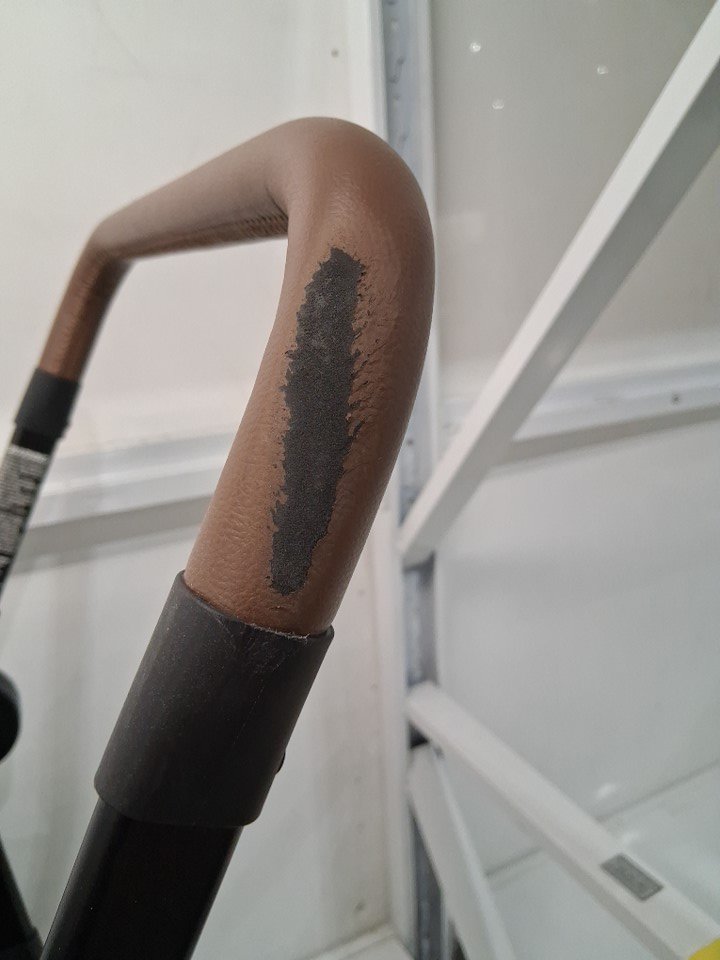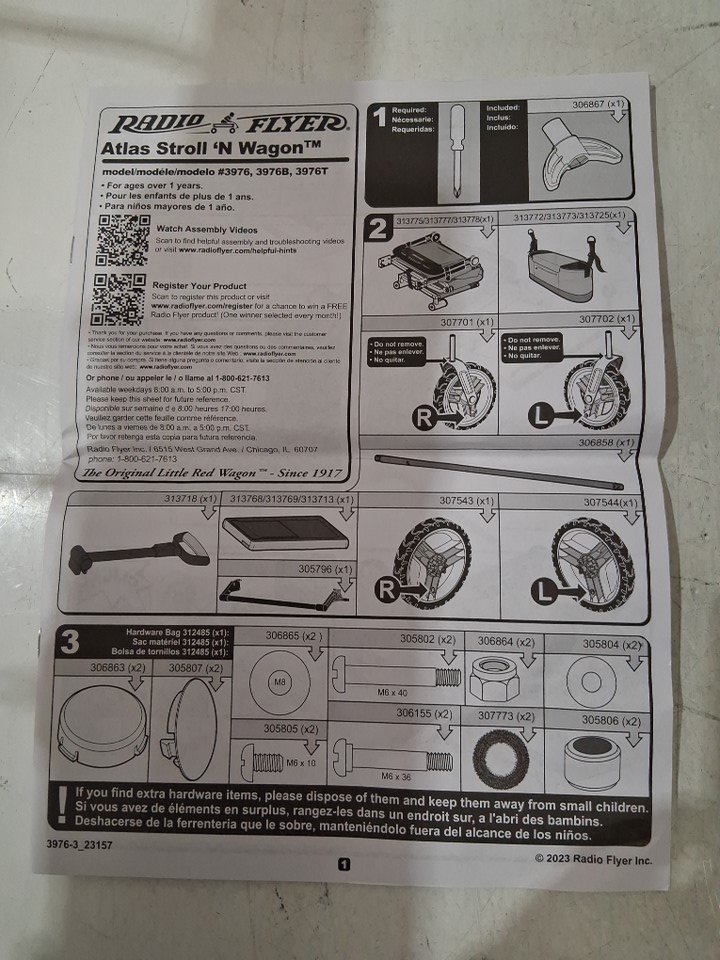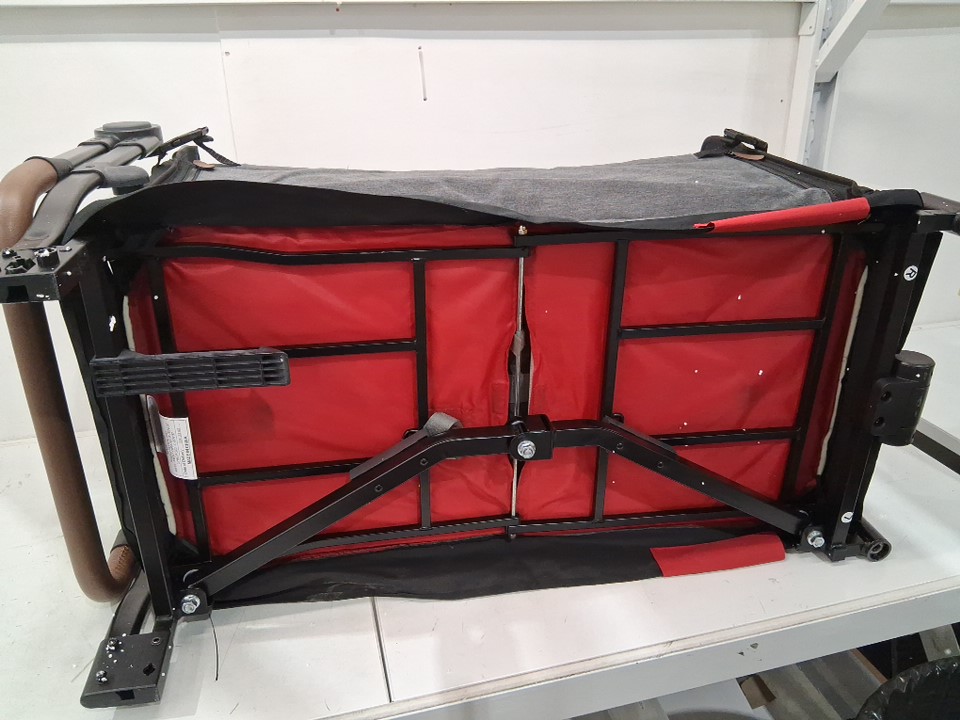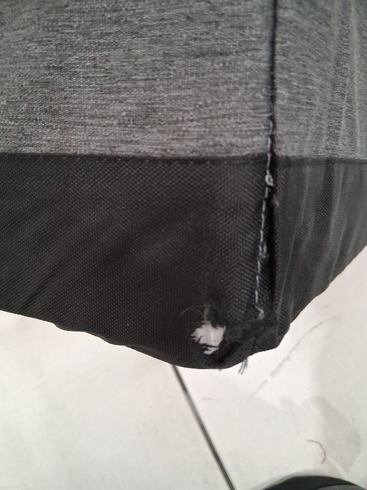 There are numerous scuffs and scratches on the plastic and metal parts of the wagon as well as on the handles, and a small rip in the fabric of the wagon as well as the corner of the larger storage box. 3 of the 4 rods used to hold up the overhead canopy appear to be missing, and there is also one screw that appears to be stuck in place where the back wheels attach to the wagon. Additionally, the wheels have some dirt stains/scratches on them and there is some dirt and grass on the inside of the wagon indicating that most of this damage likely occurred during prior ownership and use - please see photos. Outside of these issues and the missing canopy parts, there does not seem to be any major damage to any part that would impede the normal function or use of the wagon, though customer may need to supply some additional hardware (screws, etc) in case any has gone missing.