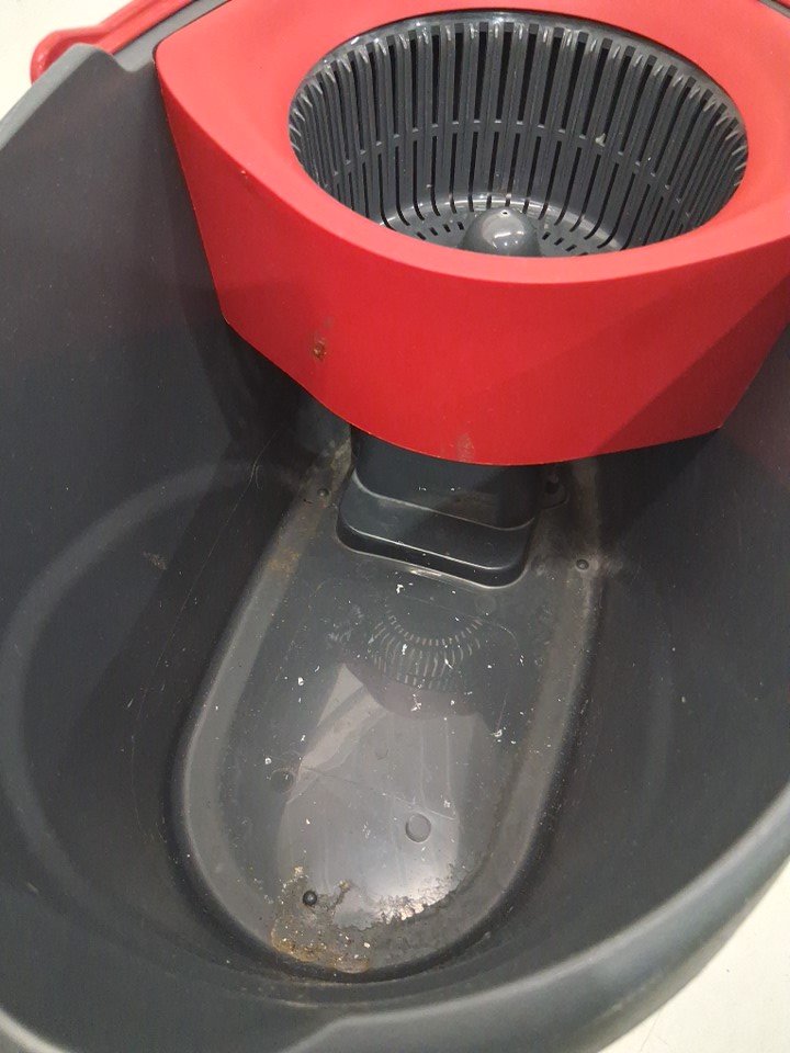item is missing the mop pole and mop head, also has some residue inside from previous use