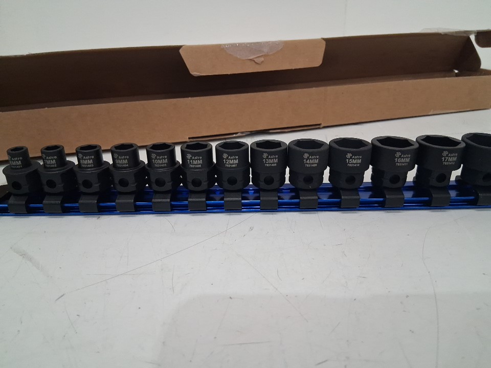 19pc astro pneumatic tools Low Profile Nano Impact Socket Set - 3/8" drive/6-24mm - black/blaue (model: 78319)