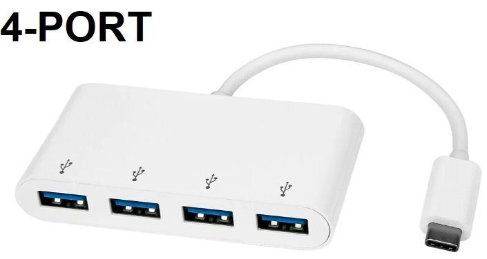 4-Port 3.0 usb-a hub with usb-c connector - white