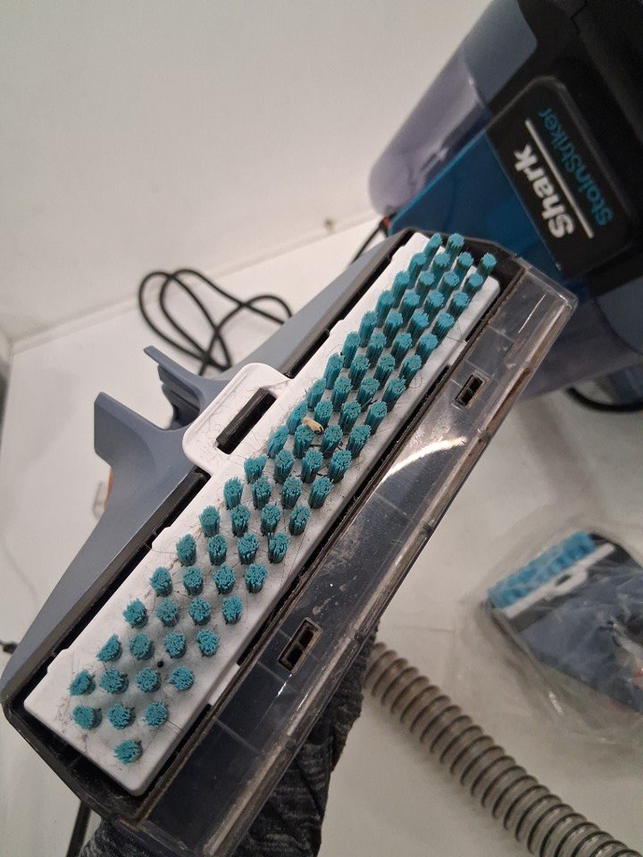 item has some dust/hair on brush from previous use also the 2 cleaning liquid has half of product left tested for power
