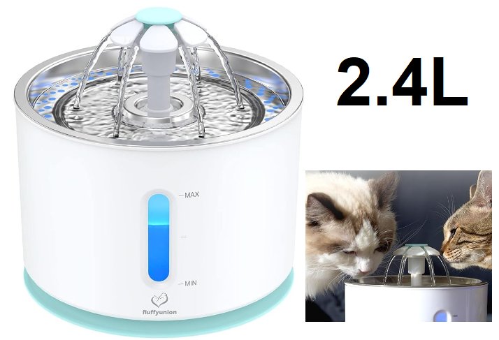 Cat Water Fountain with Stainless Steel Lid - 2.4l - white
