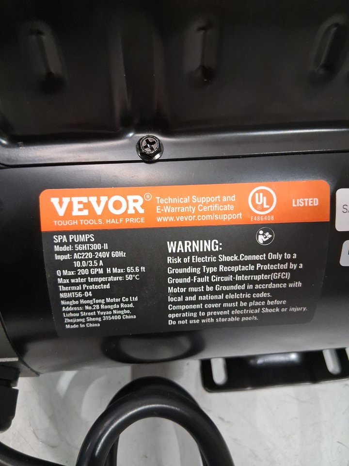 VEVOR 2 Speed SPA Pump FOR HOT TUB 56-Frame AC 220-240V - black (model: 56HT300-II)