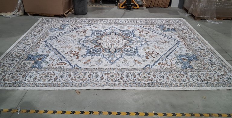 *GENERIC CONDITION STATEMENT* PLEASE BE AWARE THAT THE STOCK IMAGE USED MAY NOT 100% RESEMBLE THE COLOUR OF THE ITEM BEING SOLD. The images used and sizes given are taken from the online retailer. Rug has been inspected by our staff and laid out on our warehouse floor for full inspection and photos. Due to this nature of handling there might be light dirt or dust on the item from handling or storage in our facility at time of pick up.