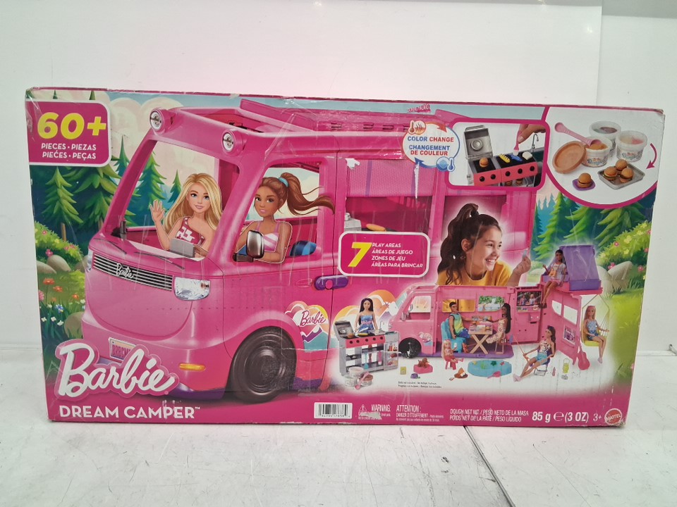60+PC Barbie Dream Camper Playset With Roof Tent and BBQ Grill (model: ‎HRJ78-9564)