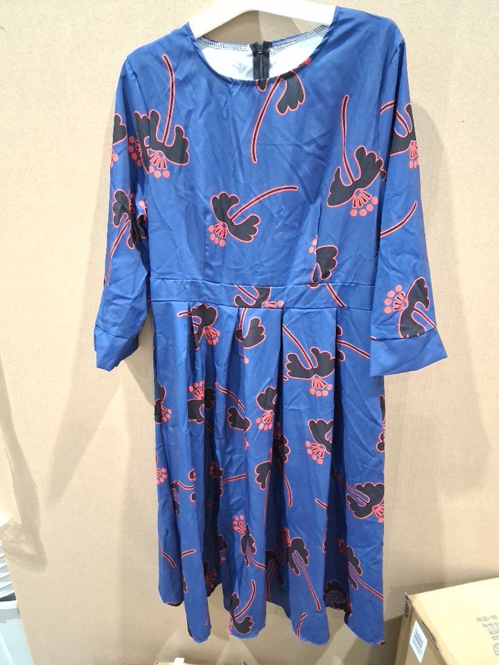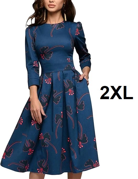 women's simple flavor floral evening flare dress with 3/4" sleeves - 2xl - blue/red