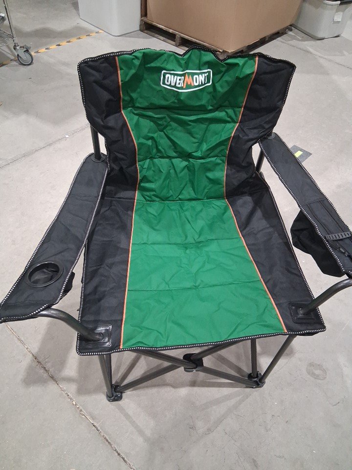 OVERMONT oversized padded folding camping chair with cooler pocket and carrying bag - 450lbs max - green/black