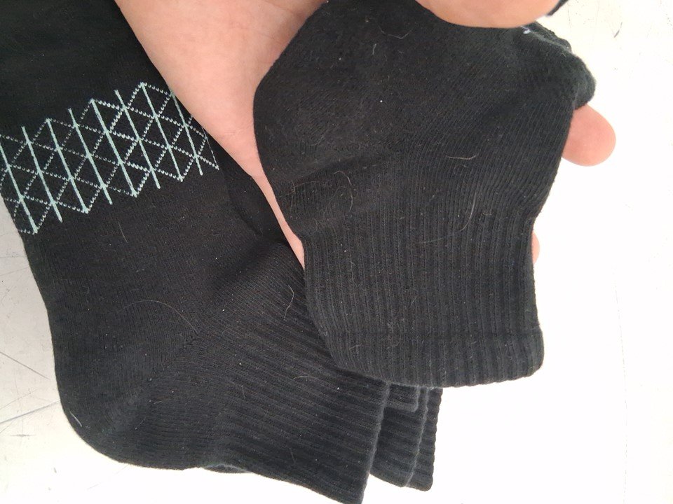 There is hair on the socks from previous use, everything else looks good.
