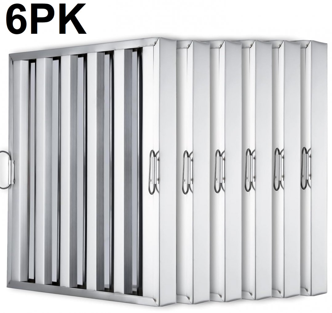 6PK GARVEE 5 Grooves Commercial Kitchen Range Hood Filter 430 Stainless Steel - 19.5"X19.5" - STAINLESS STEEL