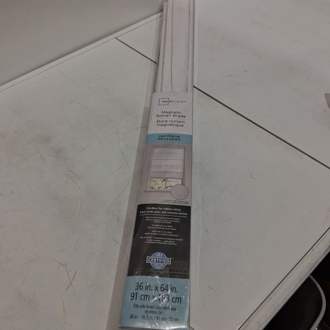 MAINSTAYS MAGNETIC FABRIC LIGHT FILTERING ROMAN SHADE - CORDLESS - 36" x 64" - WHITE