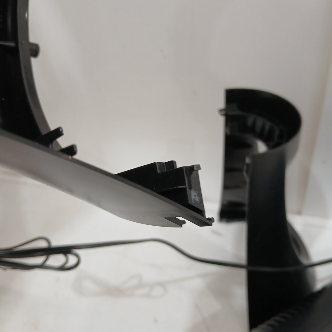there is some damage to the clips on the base, and it may not click in properly. Tested for power.