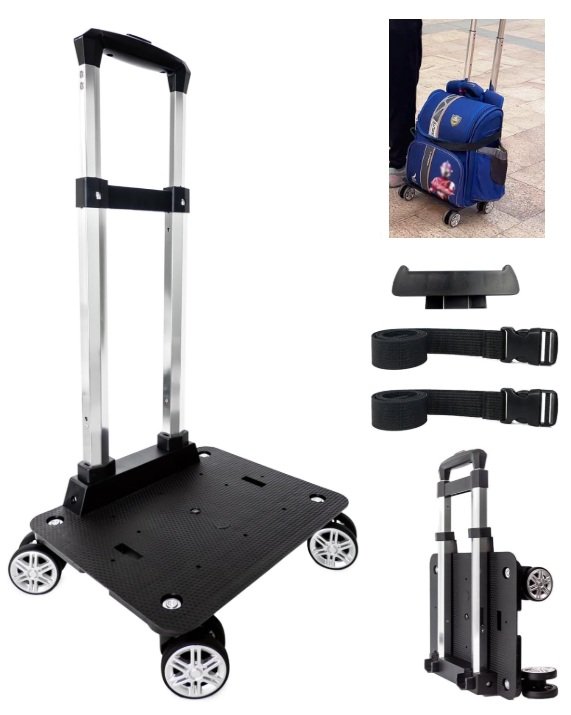 hapboby 4-wheel foldable hand truck trolley cart with luggage strap - black