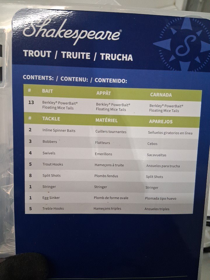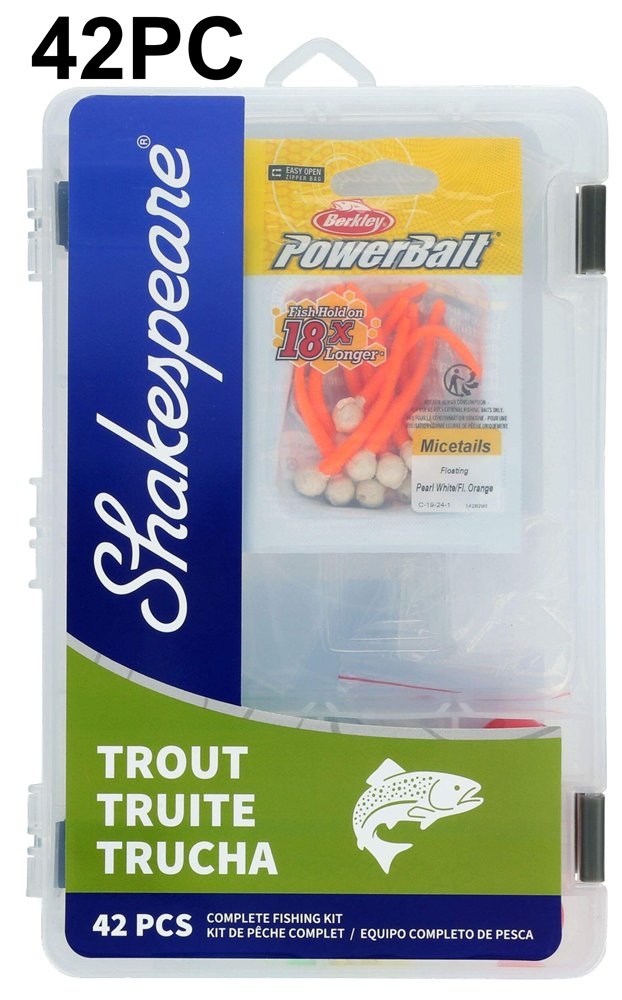42pc Shakerspeare Catch more fish tackle box kit - trout (model: cmf3trouttbkit)