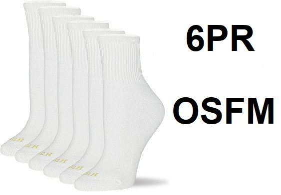 6PR WOMEN'S HUE MINI CREW SOCKS - ONE SIZE FITS MOST - WHITE