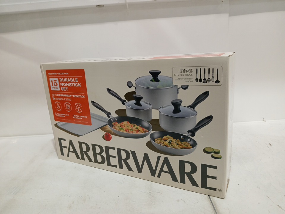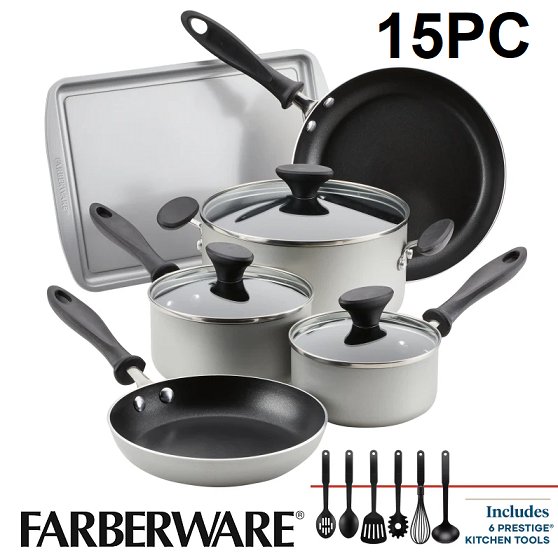15PC FARBERWARE reliance aluminum nonstick cookware set - silver (model: 22247)