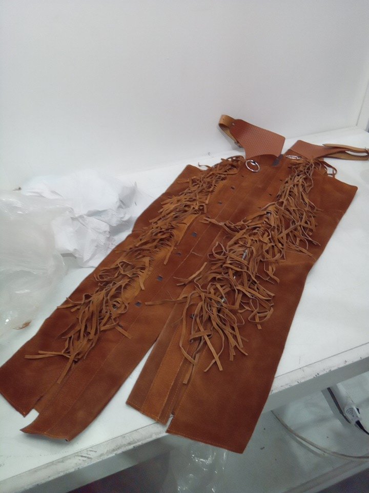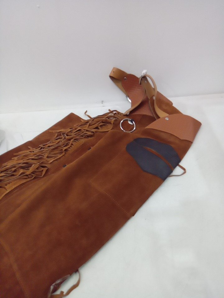unisex Leather Cowboy Chaps with fringe - osfm - brown