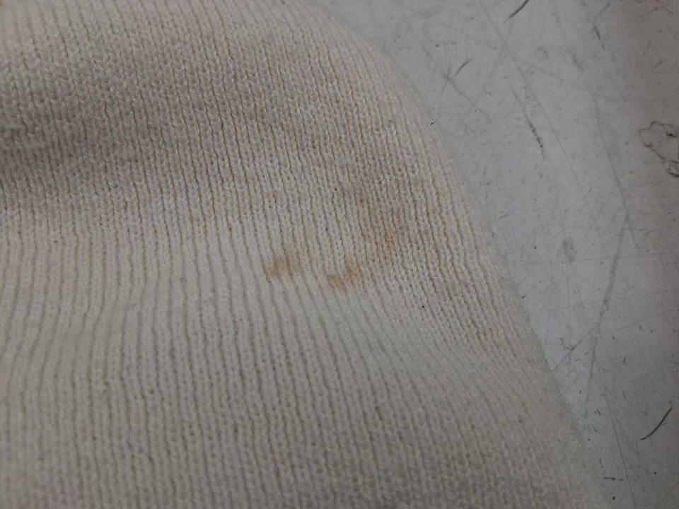 please note there is a small cosmetic stain on the hat, may be able to remove with a clothing cleaner