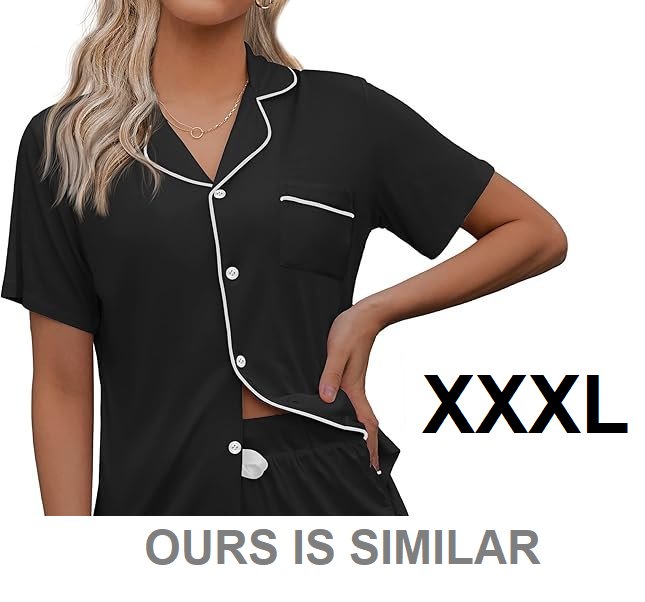 WOMEN'S EKOUAER Classic Button Down Short Sleeve PAJAMA TOP - XXXL - BLACK