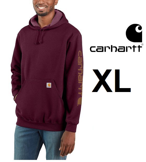 MEN'S CARHARTT LOOSE FIT MIDWEIGHT logo sleeve graphic hoodie sweatshirt - extra large - PORT (model: ts0288-m)