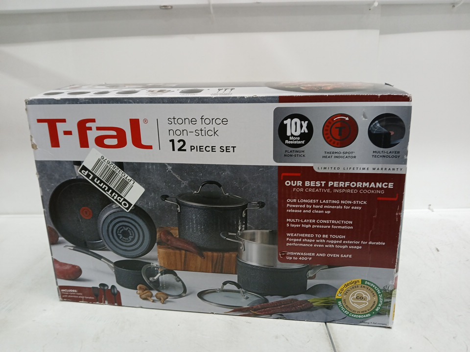 12PC T-FAL stone force Non Stick Cookware Set - black (model: ‎E275CS63)