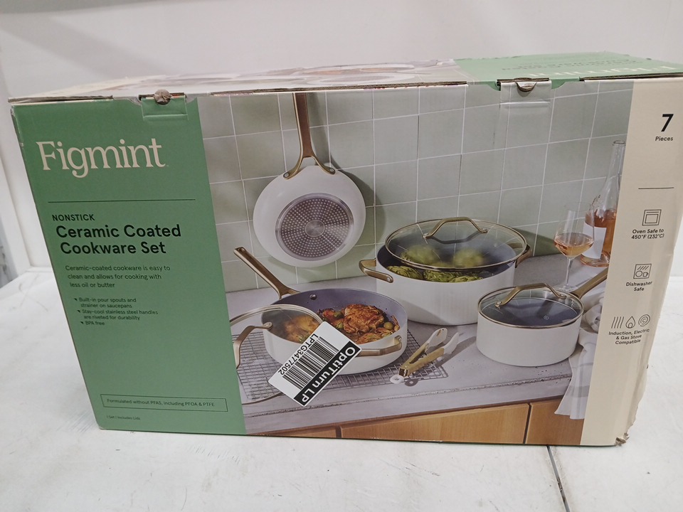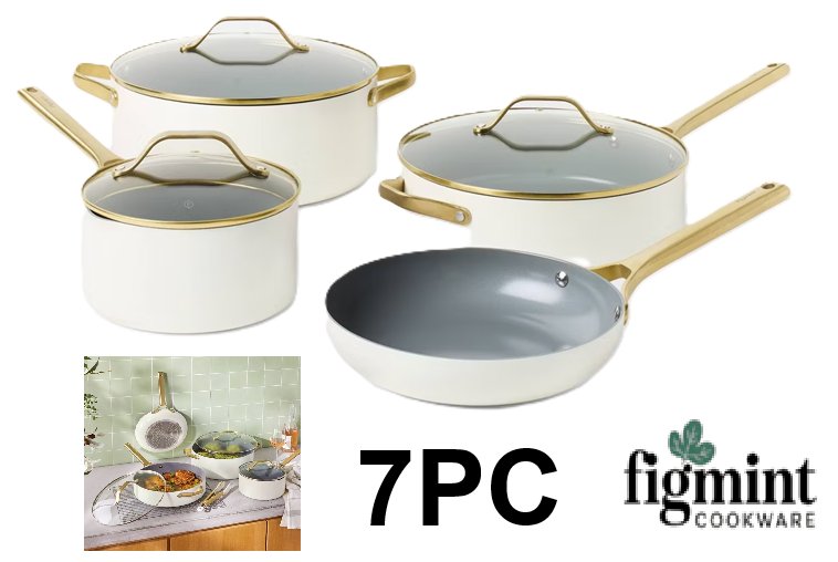 7PC FIGMINT Nonstick Ceramic Coated Aluminum Cookware Set - WHITE/GOLD