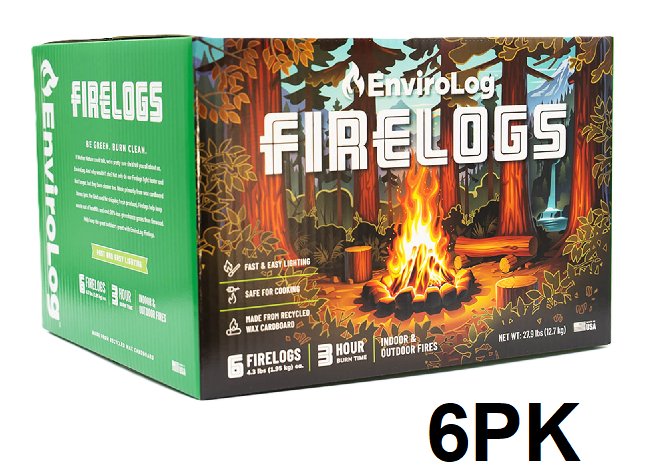 6pk envirolog firelogs - 2hr burn time - indoor and outdoor usage - 3lbs each