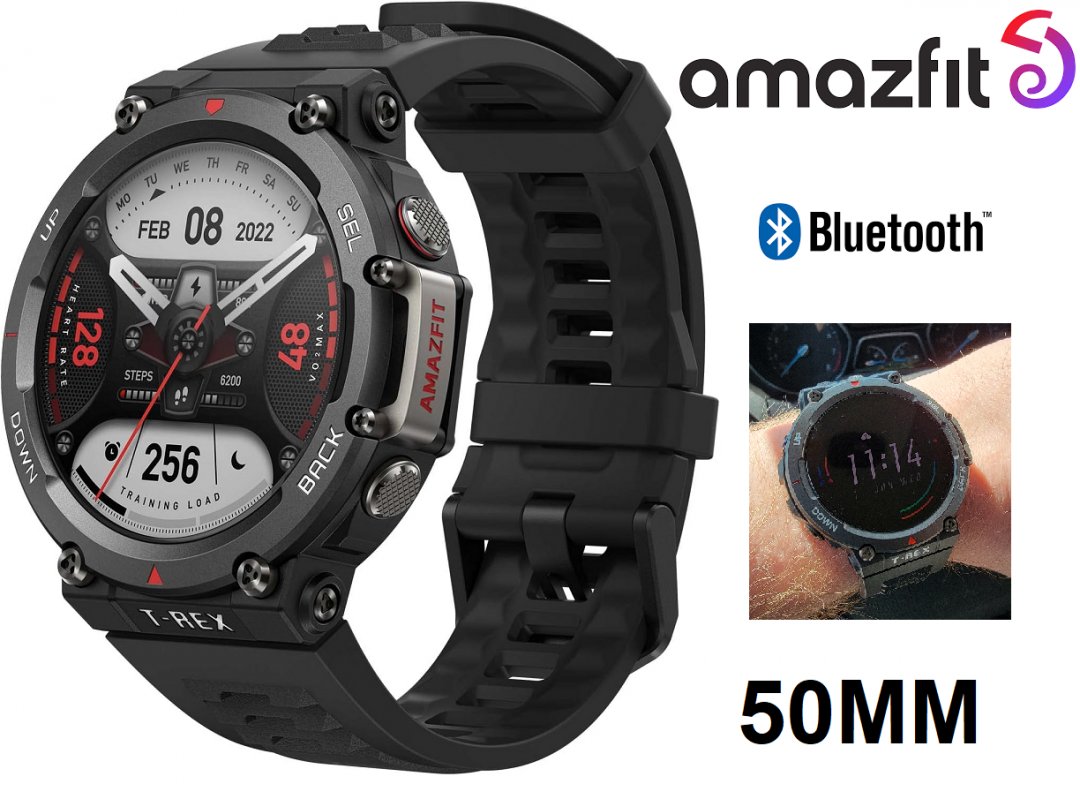 Amazfit T-Rex 2 BLUETOOTH SMART WATCH WITH GPS, FITNESS, REAL TIME NAVIGATION, 24-DAY BATTERY LIFE, ECT - 50MM - BLACK (model: a2170)