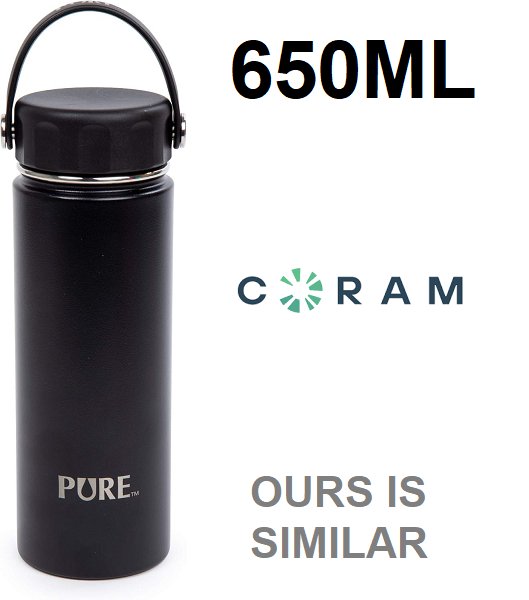 CORAM DOUBLE INSULATED WATER BOTTLE - 650ML - BLACK
