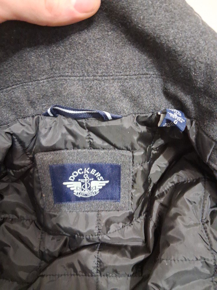 2pc men's dockers Washable Wool Blend Walking Coat with Scarf - Large - black/grey