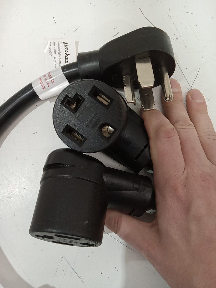 parkworld dual socket splitter cord - 2 14-30r female receptacles - 14-30p male plug - 30amp - black (model: 886603)