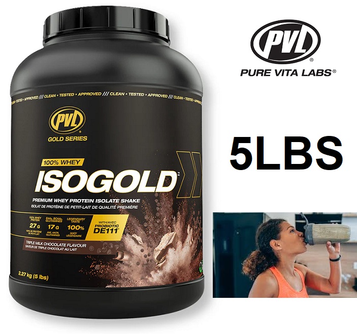 PVL Gold Series IsoGold Whey Protein Shake Powder - 5lbs - Triple Milk Chocolate