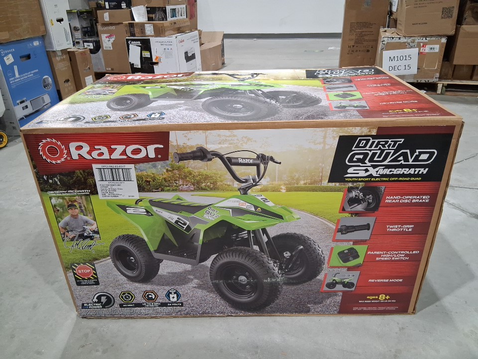 Kids Razor Dirt Quad sx McGrath electric atv Ride-On - 13Km/h, 24V, 120lbs cap - Green - (Model: 25143030)