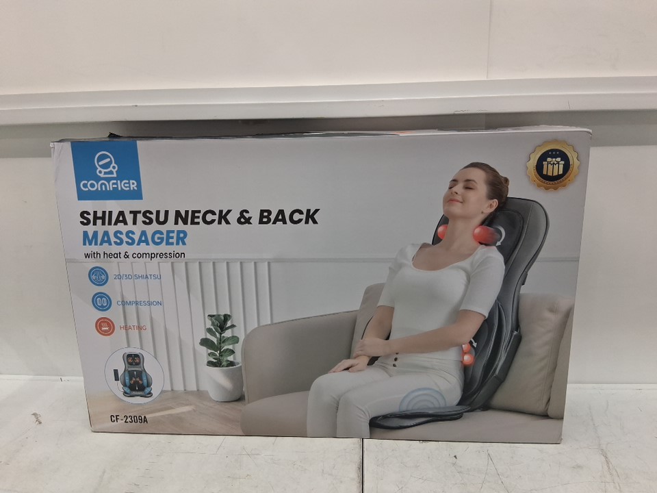 COMFIER NECK AND BACK MASSAGER WITH HEAT, SHIATSU MASSAGE CHAIR PAD PORTABLE WITH AIR COMPRESS & ROLLING, KNEADING CHAIR MASSAGER FOR FULL BACK, NECK & SHOULDER - (MODEL: CF-2309A)
