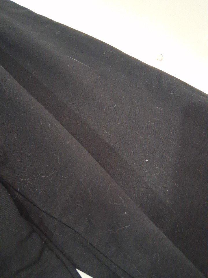 There is a decent amount of hair on the sweatpants from previous use, there is no scuff marks or stains.