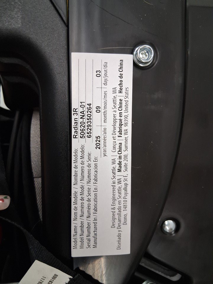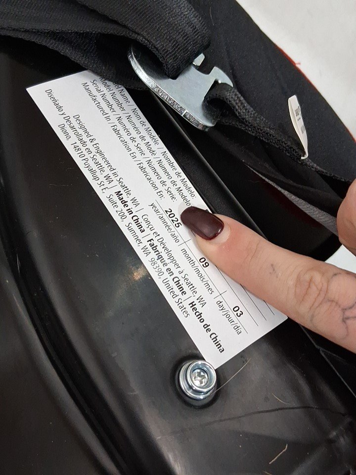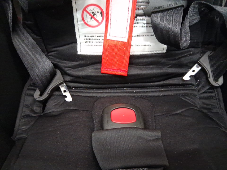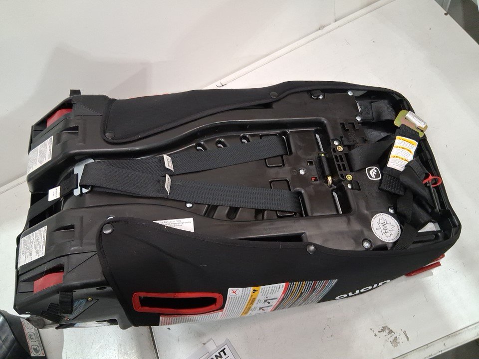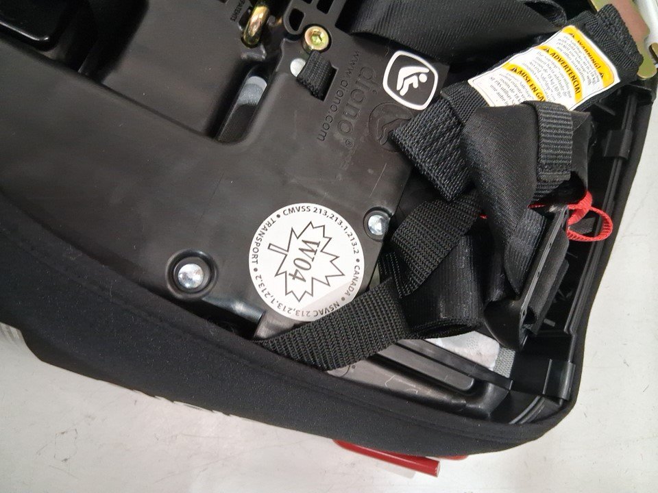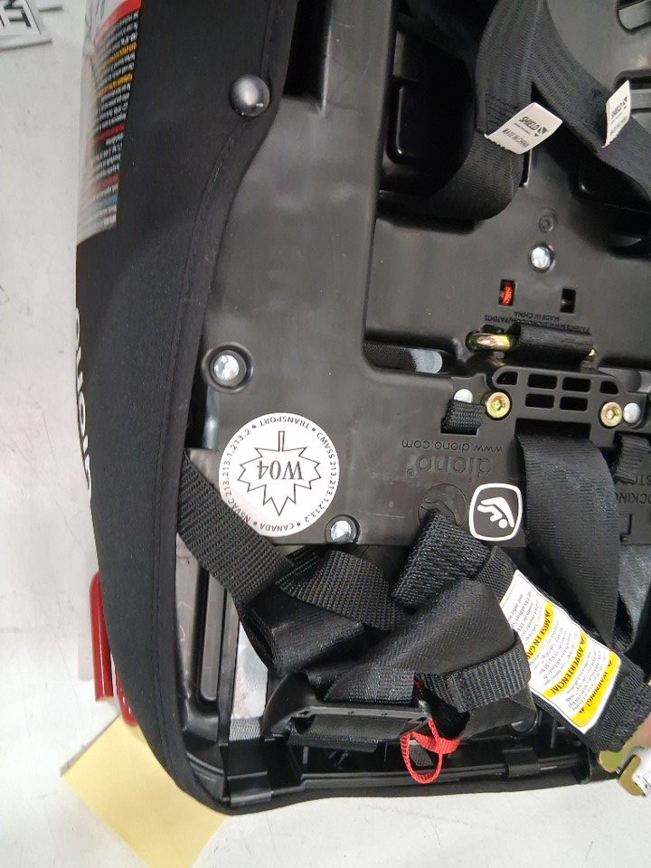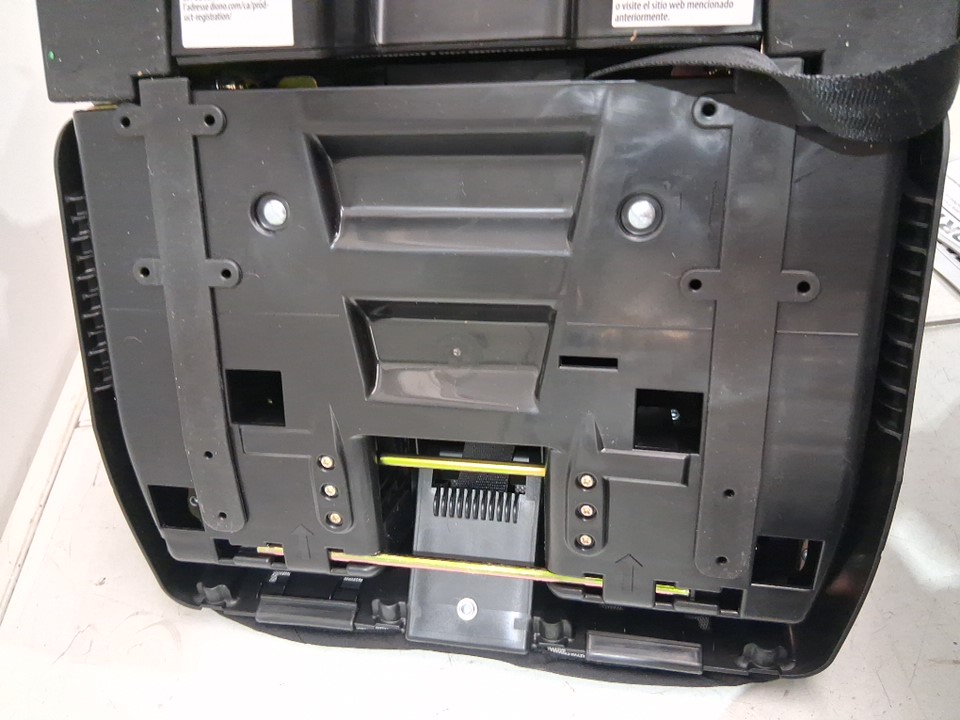 item has crumbs stuck in the seat fabric as well as some minor scuffs on the under and back side of the seat indicating prior light use