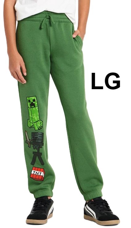 Boys Minecraft Creeper Fleece Jogger Pants - large - Forest Green
