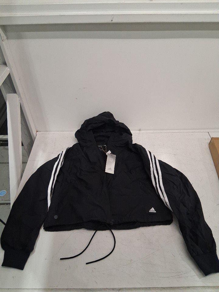 Women's Adidas Future Icon Three Stripes Woven Windbreaker with hood - 2XS - Black/White (Style: HA8435)