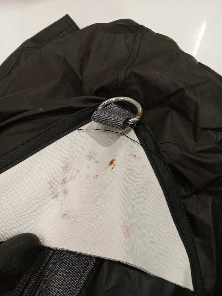 item was wet when it arrived at the facility, we have checked for holes or tears. see photos.