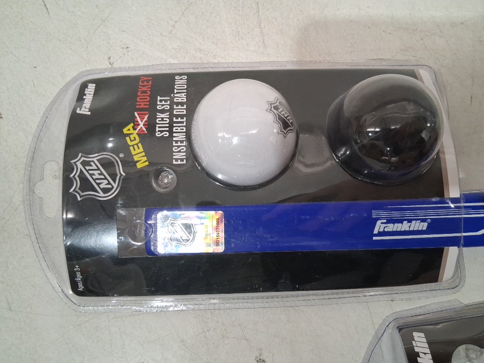 6PC KIDS/YOUTH NHL ASSORTED HOCKEY STICK SET - 1 20" FLEX PLAY MINI HOCKEY STICK, 1 40" MEGA HOCKEY STICK, 4 FOAM HOCKEY BALLS