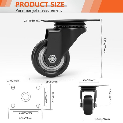 4pk Huvanta PLATE SWIVEL CASTER WHEELS - 360° - 2" - black