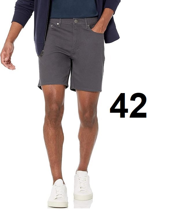 MENS AMAZON ESSENTIALS SLIM FIT 7" INSEAM STRETCH 5 POCKET SHORT - SIZE 42 - dark grey (model: AEM20012SP21)