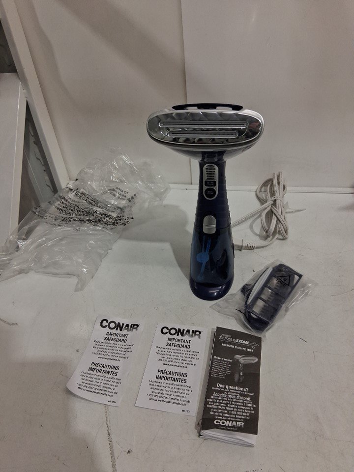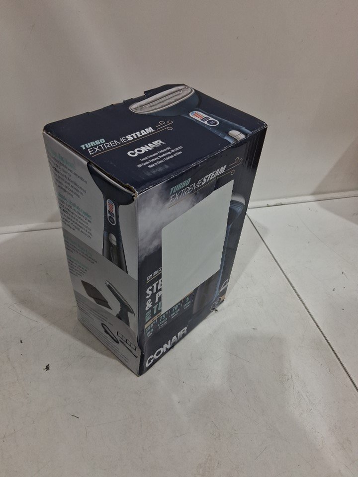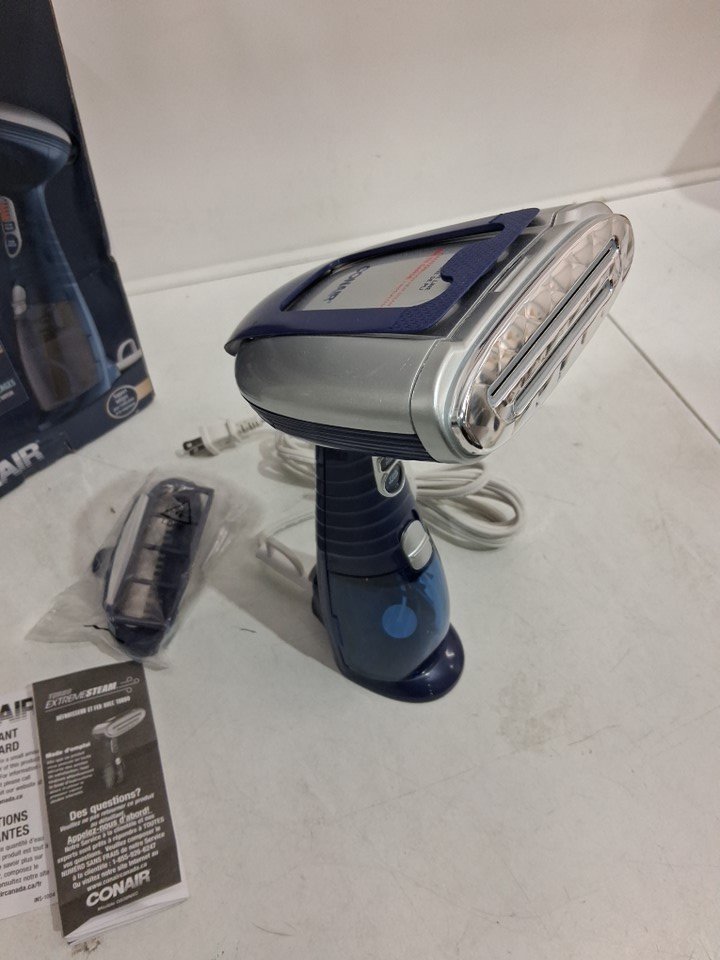 CONAIR TURBO EXTREME STEAM AND PRESS HANDHELD FABRIC STEAMER with built in stand - 1875 WATTS - BLUE - (MODEL: GS38NXC)