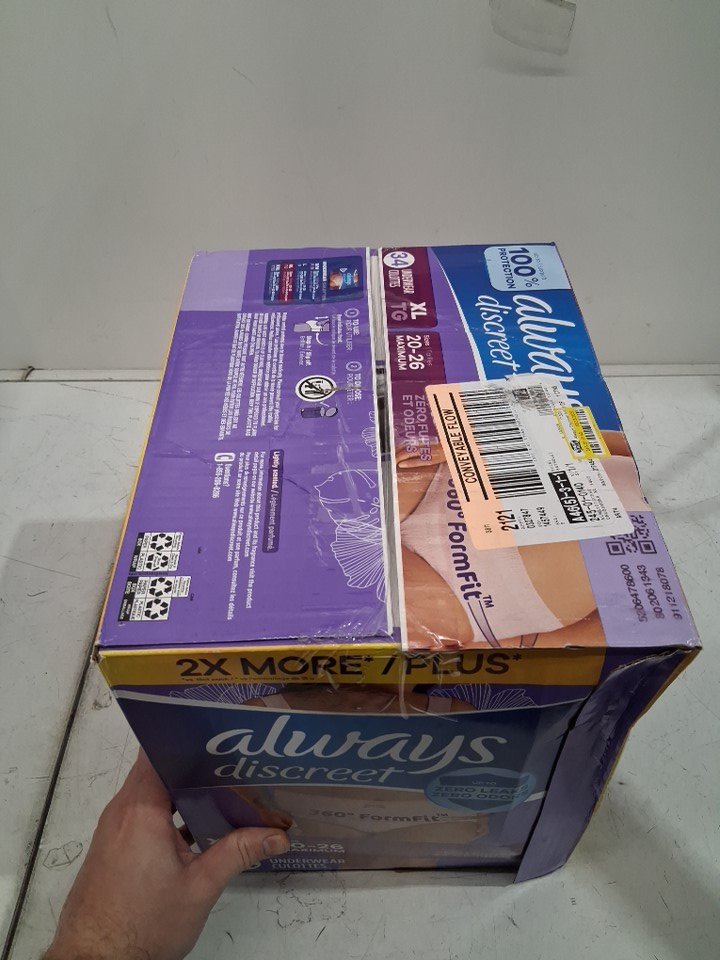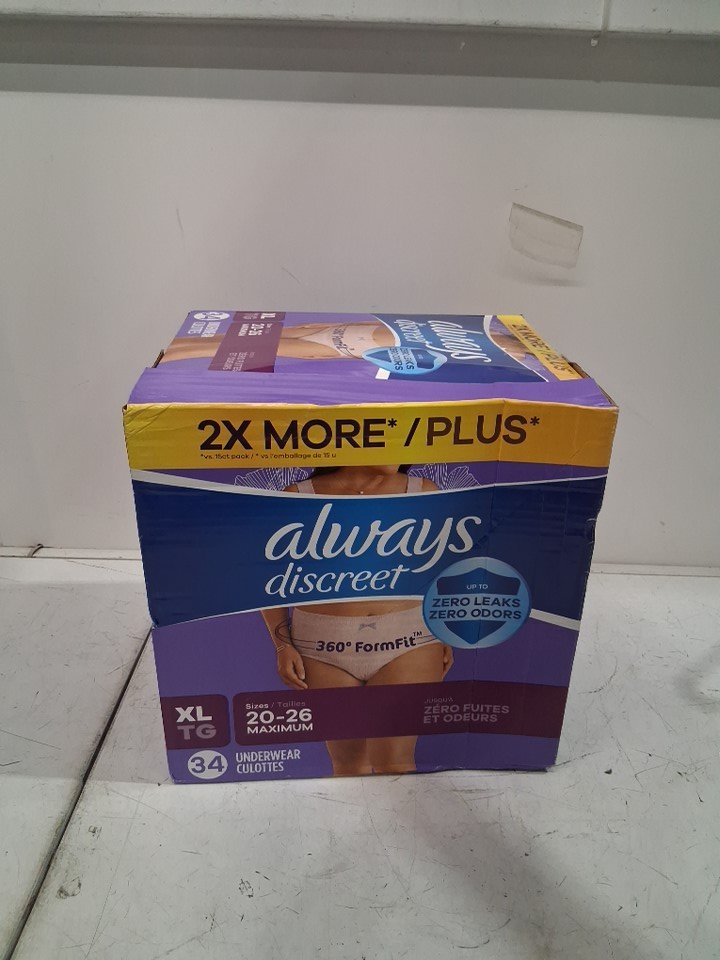 34PK WOMENS' ALWAYS DISCREET INCONTINENCE UNDERWEAR - 360° FORM-FIT - MAXIMUM ABSORBANCY - SIZE XL
