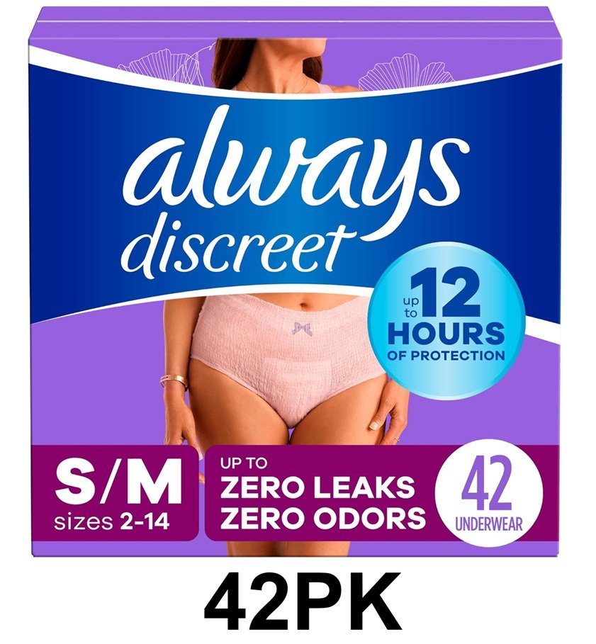 42pk Always Discreet Incontinence & Postpartum Underwear - Small/Medium - pink